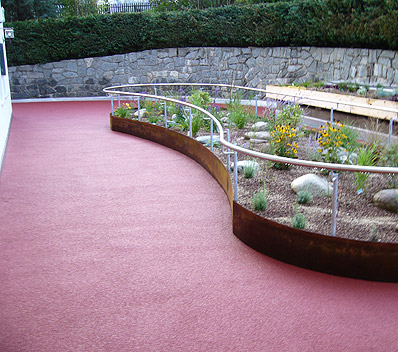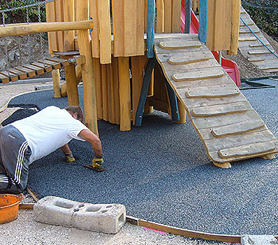 Ein sehr spezieller Arbeitsbereich stellt der Einbau von Fallschutzbelägen aus Gummigranulat dar, welcher besonders im Außenbereich bei Altersheimen, Kindergärten, Schulen, Spielparks usw. Verwendung findet. Unsere Mitarbeiter bauen die Fallschutzbeläge je nach Größe der Fläche händisch oder maschinell ein.